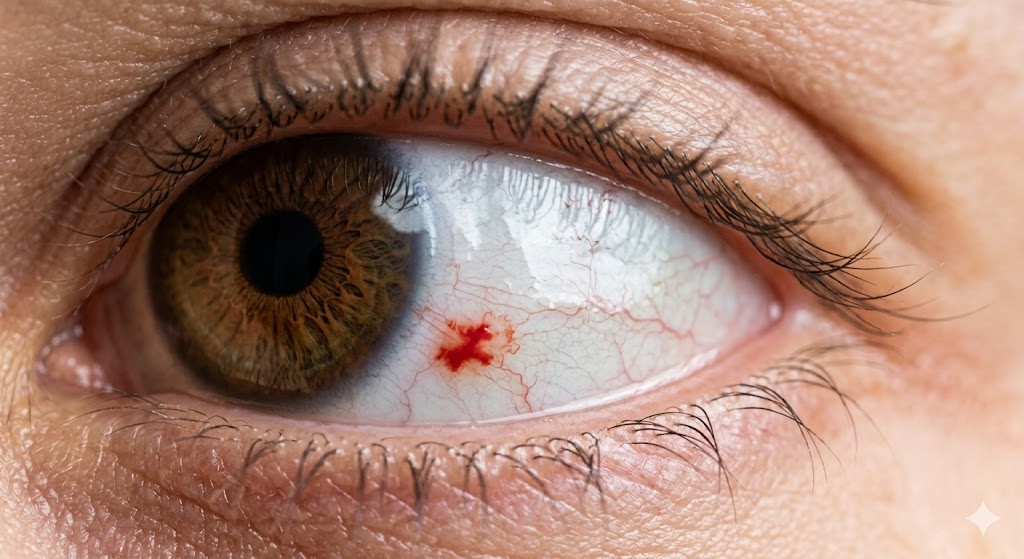 De fleste bliver forskrækkede, når de ser sig selv i spejlet og opdager en kraftig rød plet i det hvide i øjet, men i de fleste tilfælde er en blodsprængning i øjet helt harmløs. Det skyldes, at de små blodkar, der ligger lige under bindehinden (konjunktiva), er ekstremt fine og skrøbelige. De kan briste ved selv små trykændringer, som for eksempel et kraftigt nys, et hosteanfald eller hvis man kaster op. Også tunge løft eller hård fysisk træning kan øge trykket i hovedet nok til, at et lille kar giver efter. Det kan sammenlignes med et blåt mærke på huden, men fordi hinden over øjet er gennemsigtig, ser blodet meget mere dramatisk og rødt ud.